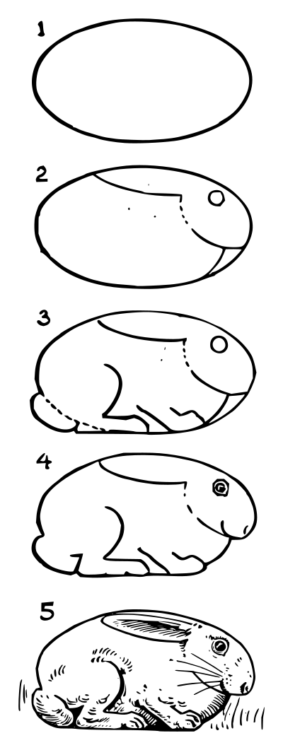 Image of a bunny or rabbit from E. G. Lutz book "Drawing made easy", © 1921, page 39. Available at https://archive.org/details/drawingmadeeasyh00lutz/page/38/mode/2up