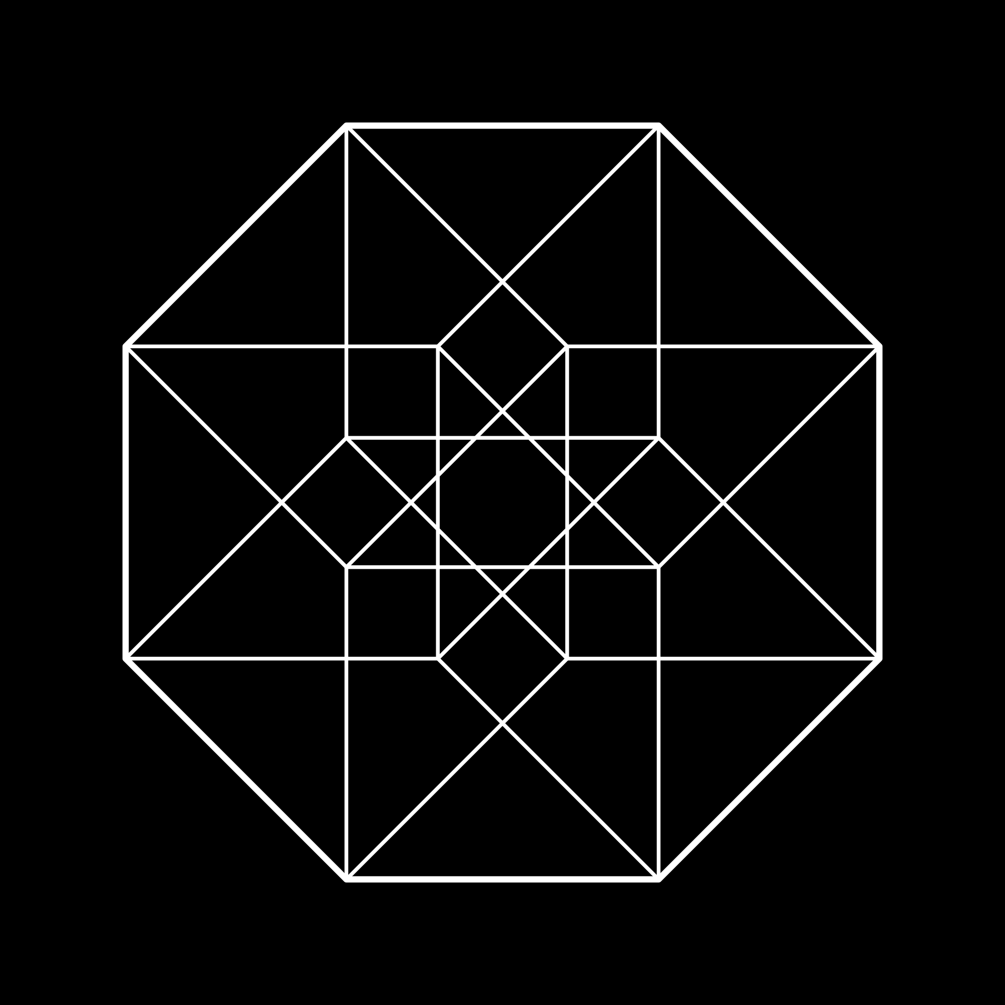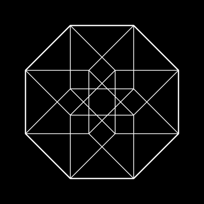 A hypercube built up by rotating squares.