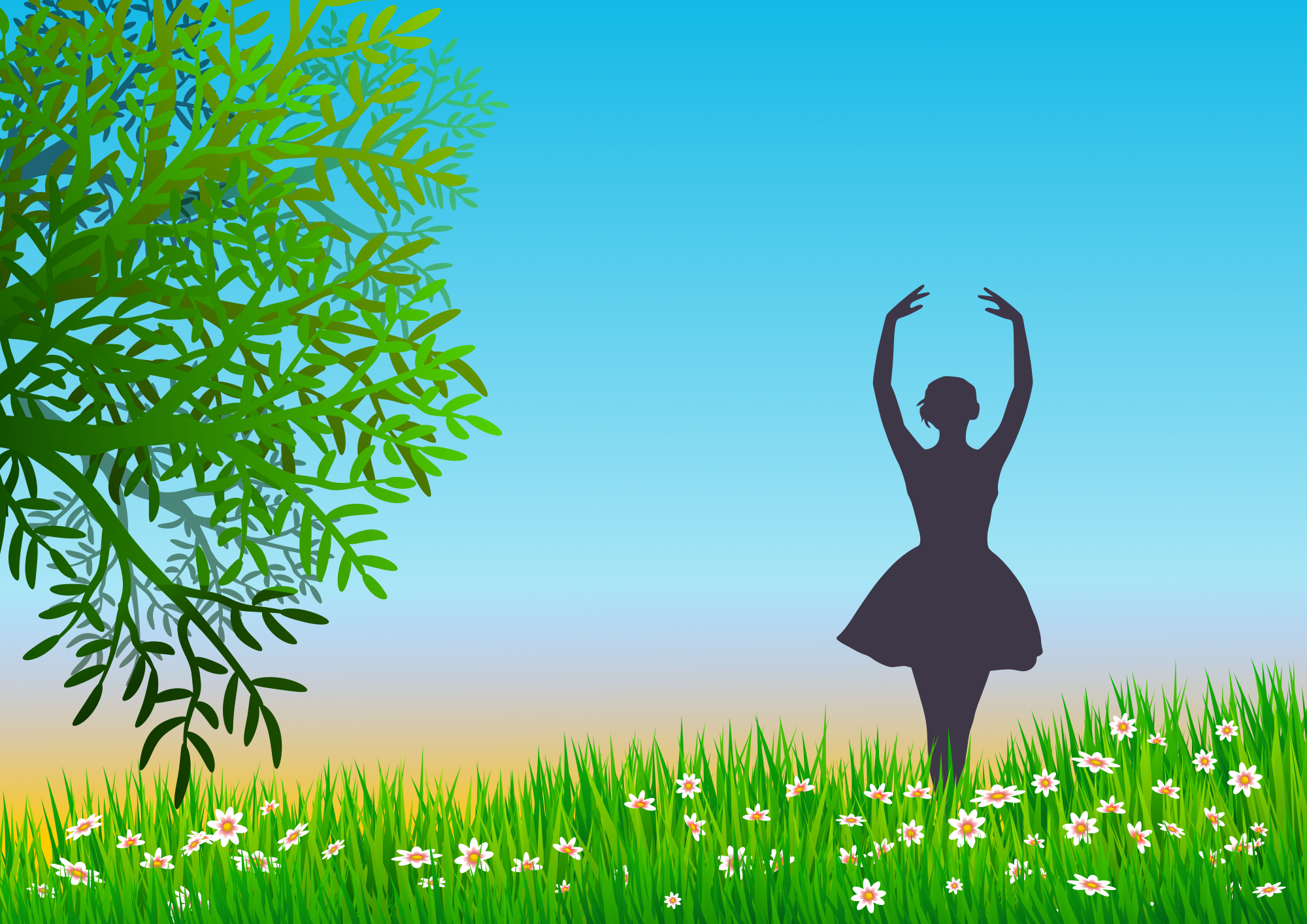 - landscape flower floral field nature tree flowers background grass spring female silhouette leaves relax calm remix+313464