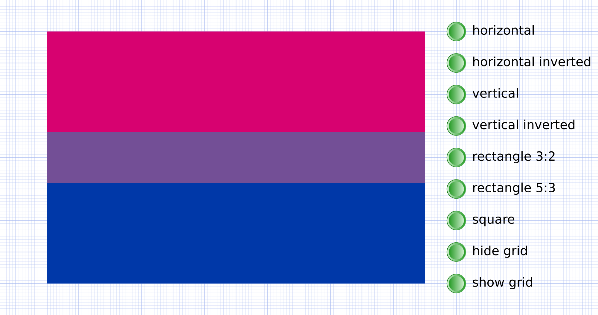 Bisexual pride flag horizontal/vertical stripes, square or rectangles with 2 different aspect ratios