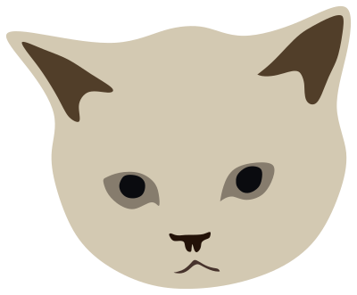 Illustration of the head of Mochi The New Home Office Cat, made with Inkscape.