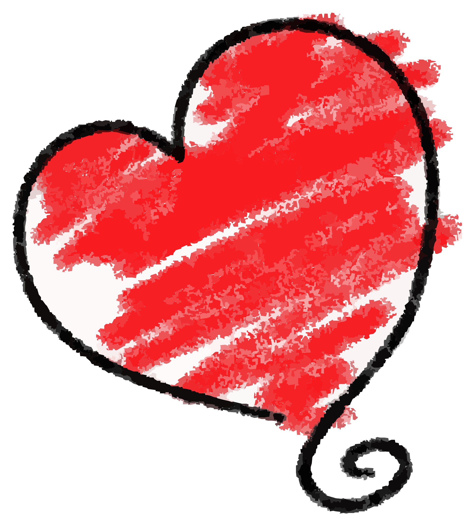 Red heart with a black outline and a curly "tail" at the bottom, crayon effect. Vectorized from Dawn Hudson's stunning original https://www.publicdomainpictures.net/en/view-image.php?image=78686&picture=&jazyk=JP
