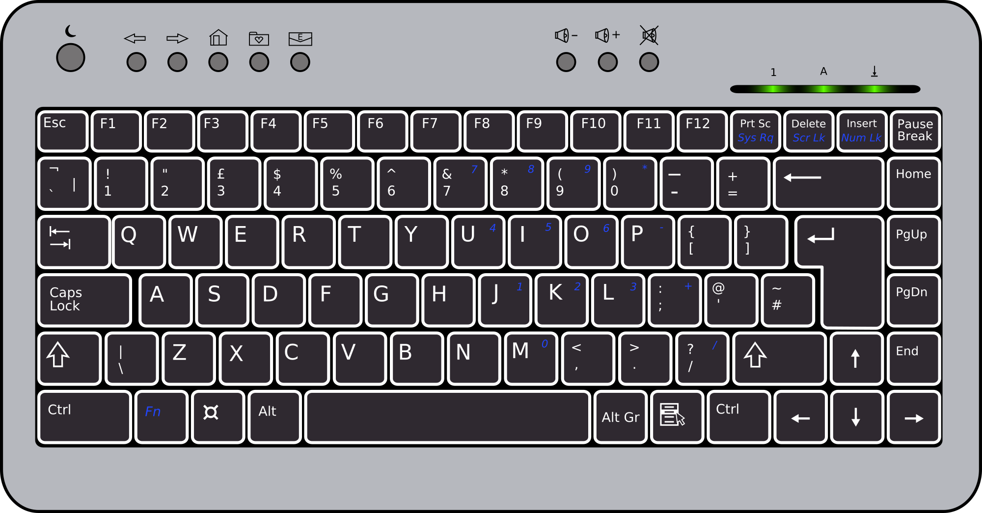 A symbolised reorientation of the btc6100c keyboard; the UK version (gb layout)