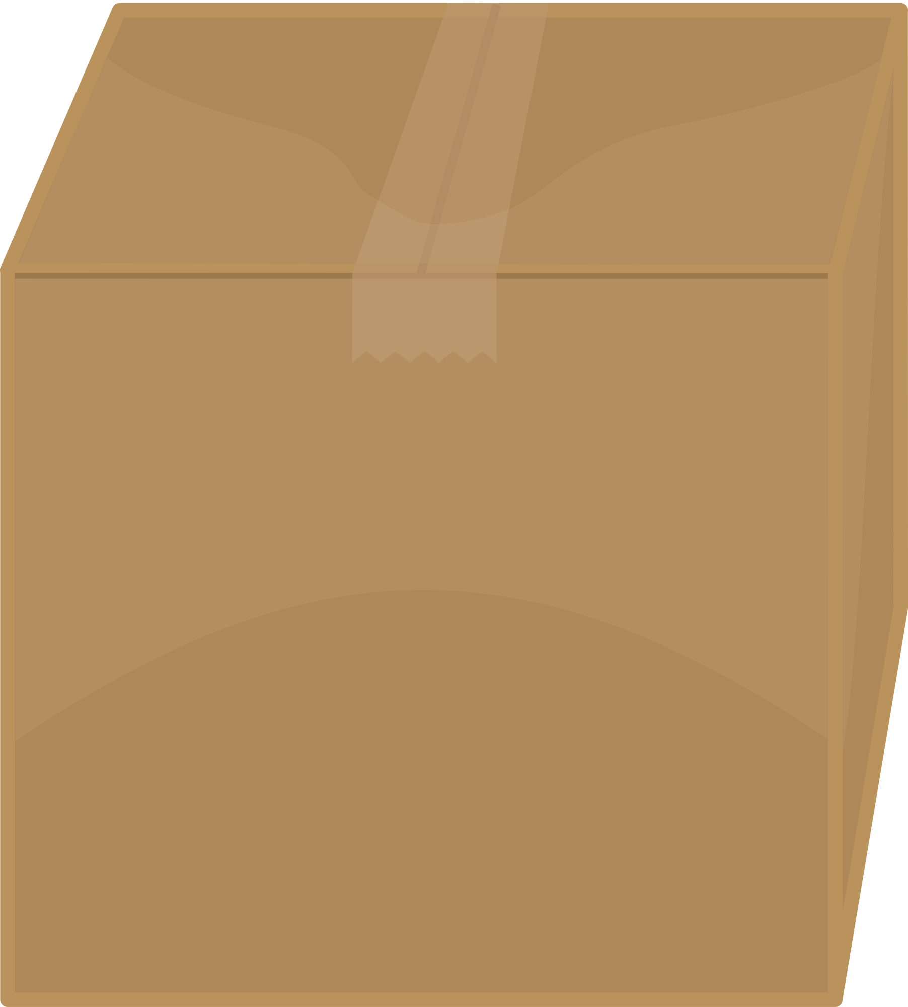 A cardboard box, taped shut.