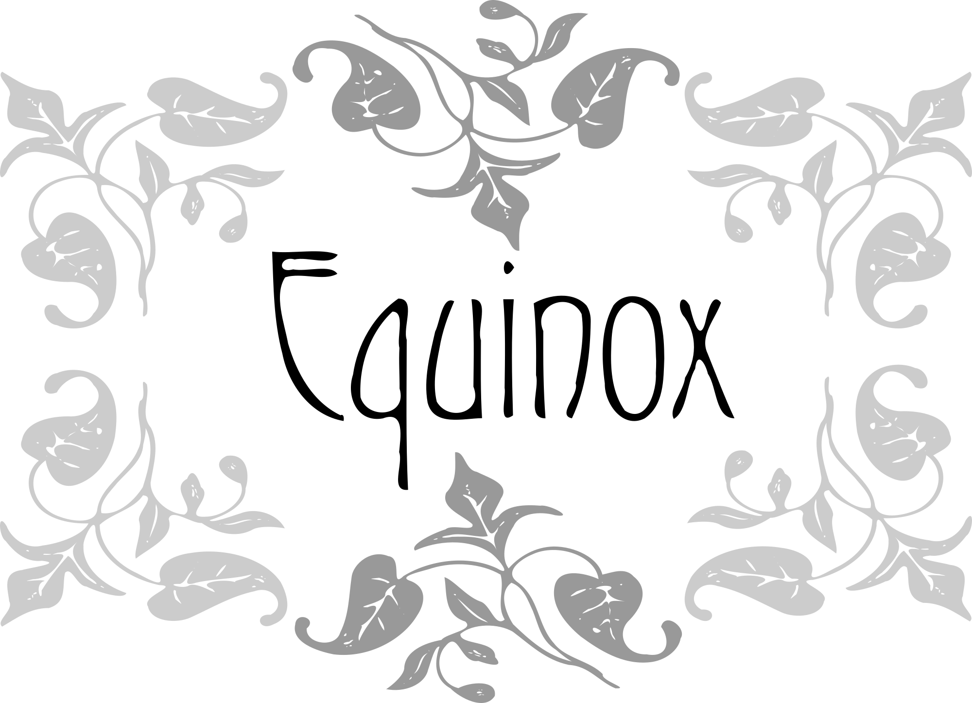 vectorised leaf motif fromoldbooks.org - turned and repeated to form a border. Equinox - in the middle - inked out with inkscapes simplify nodes tool. Download Original Vine leaf motif http://www.fromoldbooks.org/DelamotteOrnamentalAlphabets/pages/53-Monograms,Crosses-etc.-img10-vineleaves/ Have now removed the above link from the SVG and converted text to paths.