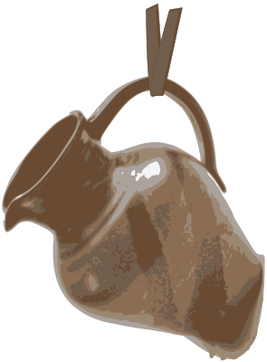 Ceramic Jug hanging from leather strand.
