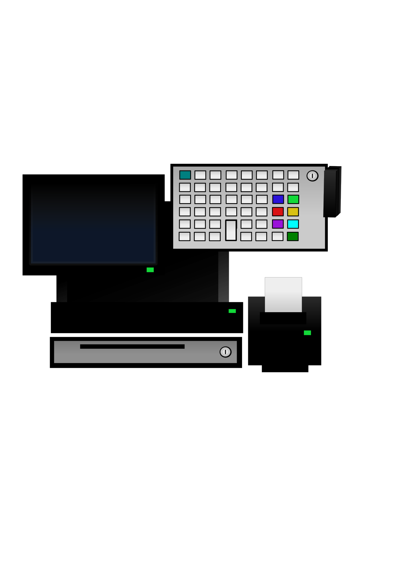 Basic POS Terminal hardware - pos keyboard, screen, cash drawer, receipt printer