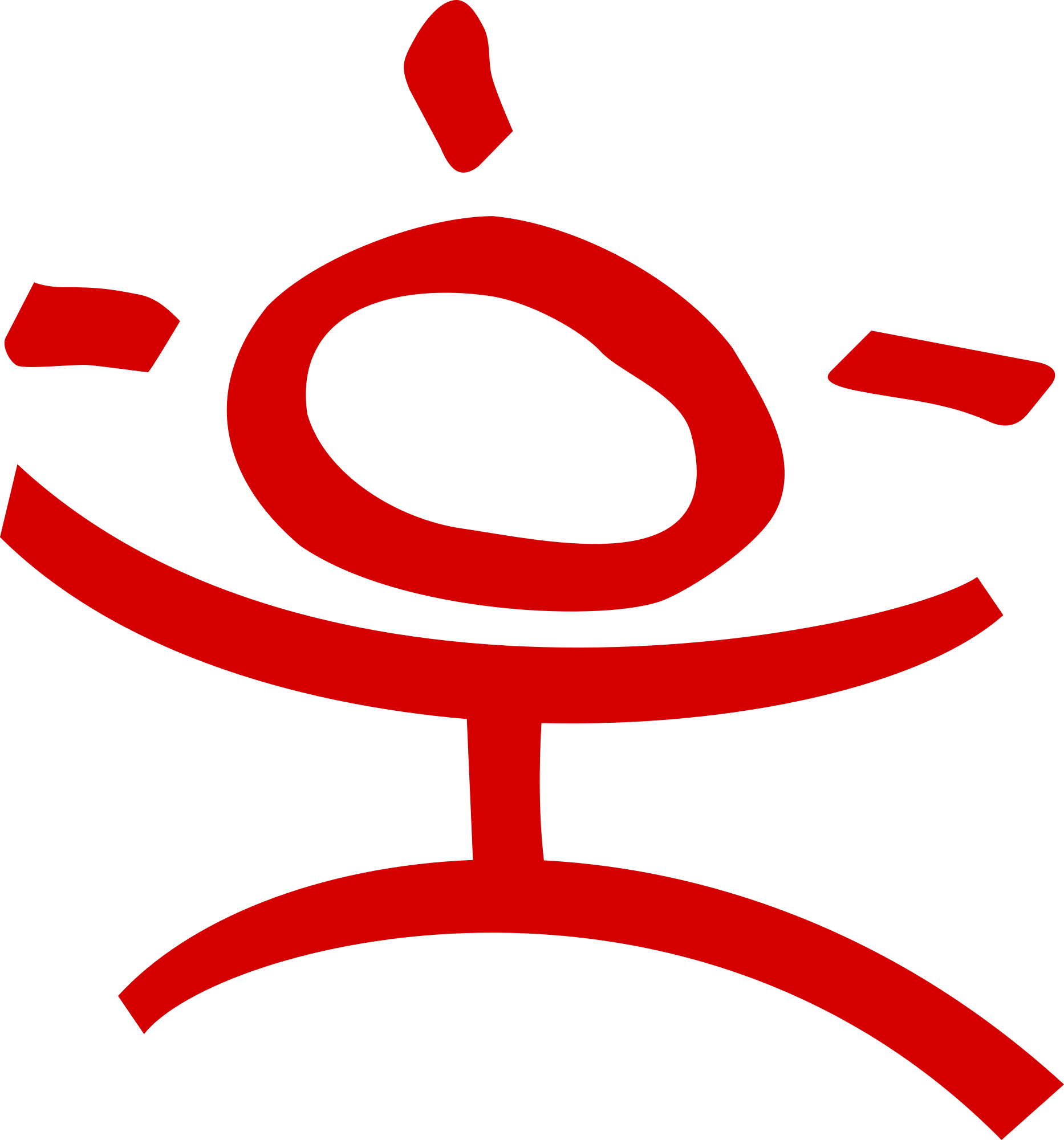 An expressive man logo in red.