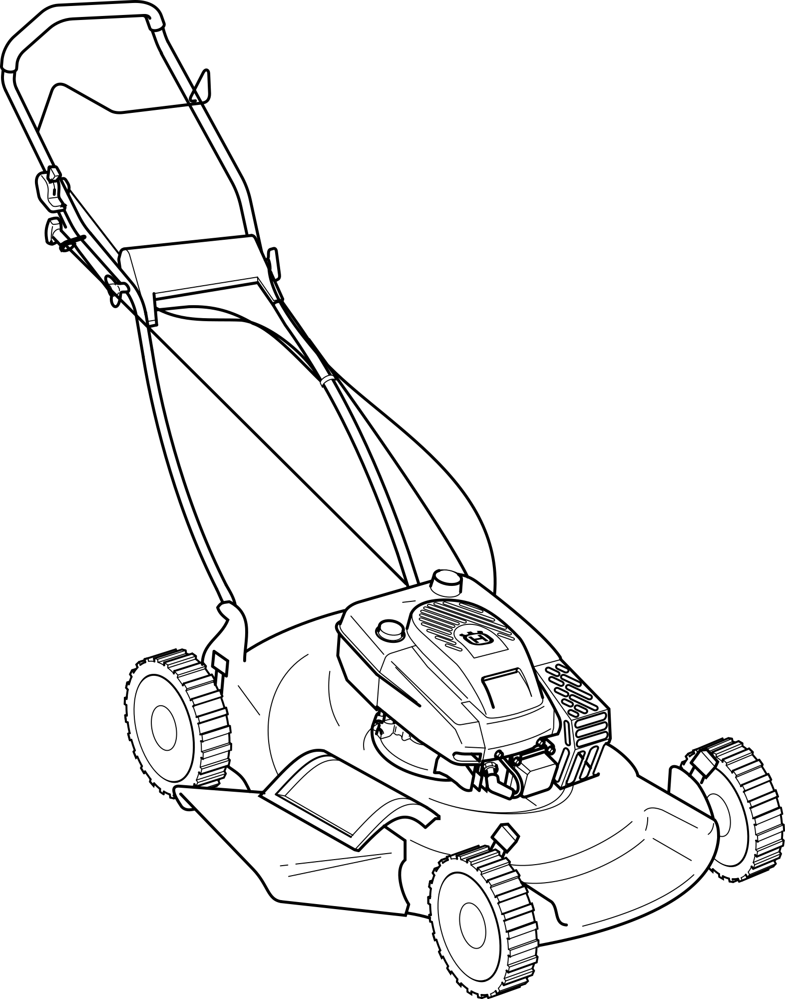 Technical drawing of a lawn mower.