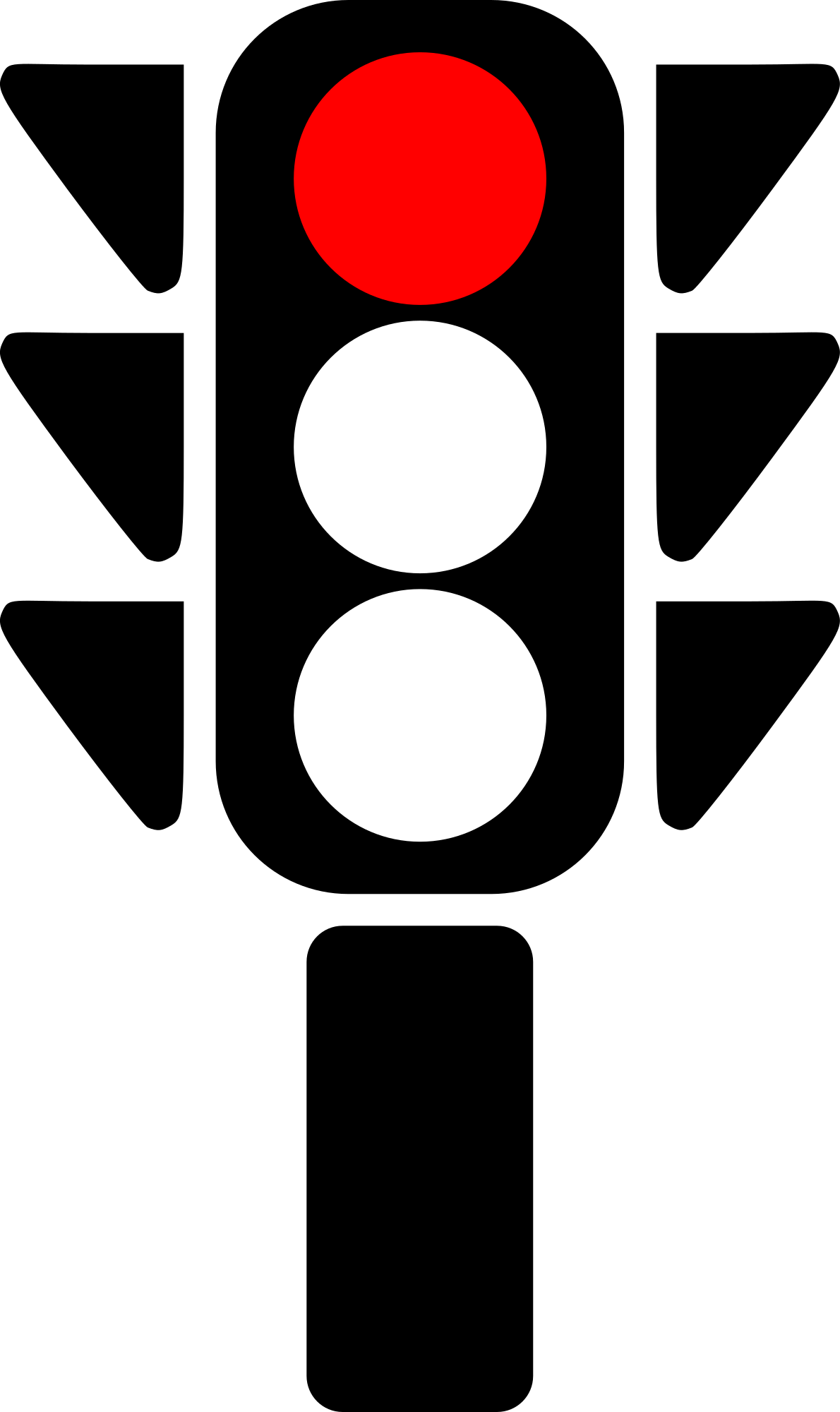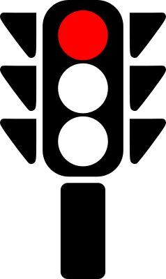 A silhouette of a traffic semaphore with its red light on.