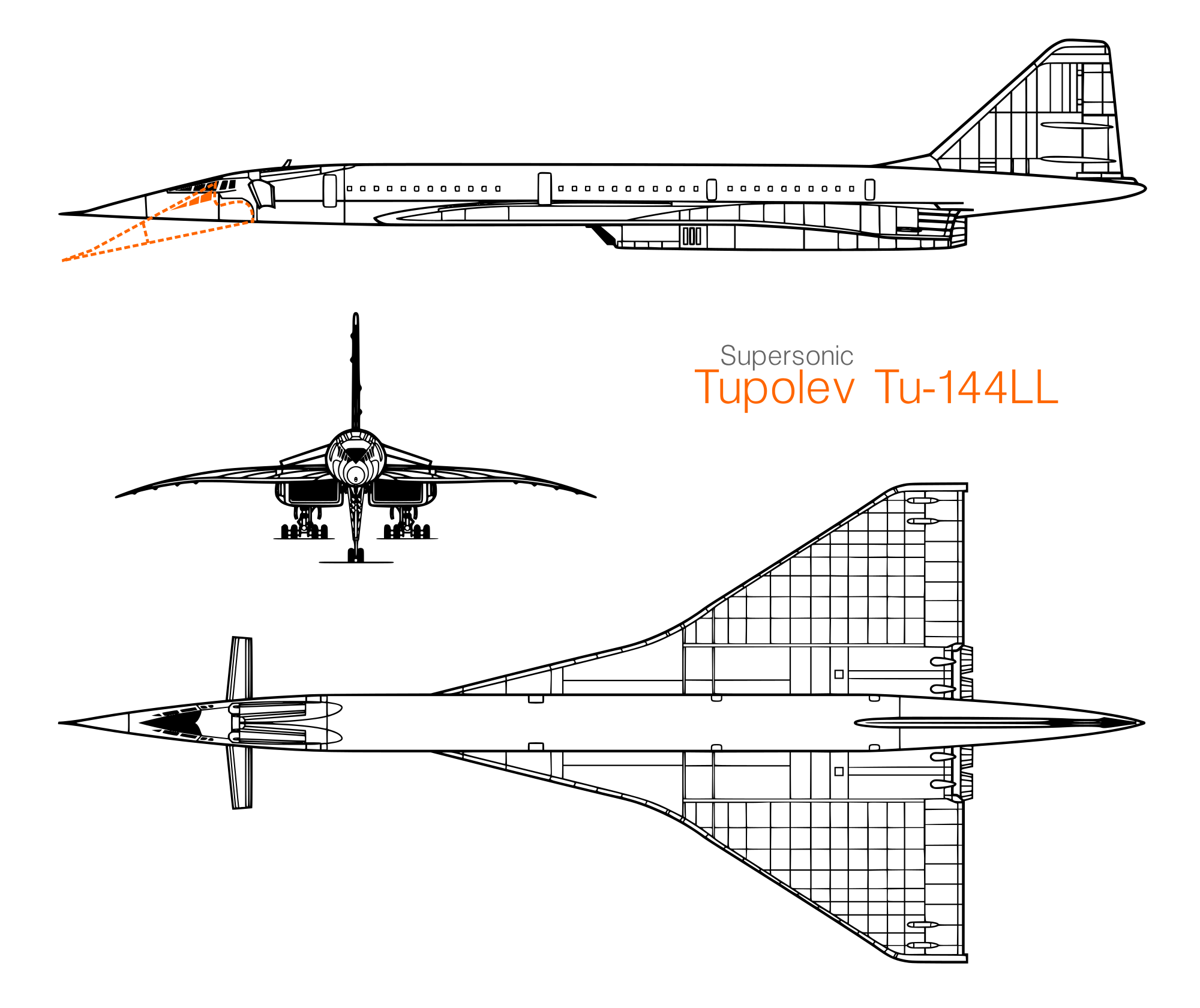 a 3-view of the Tupolev Tu-144LL