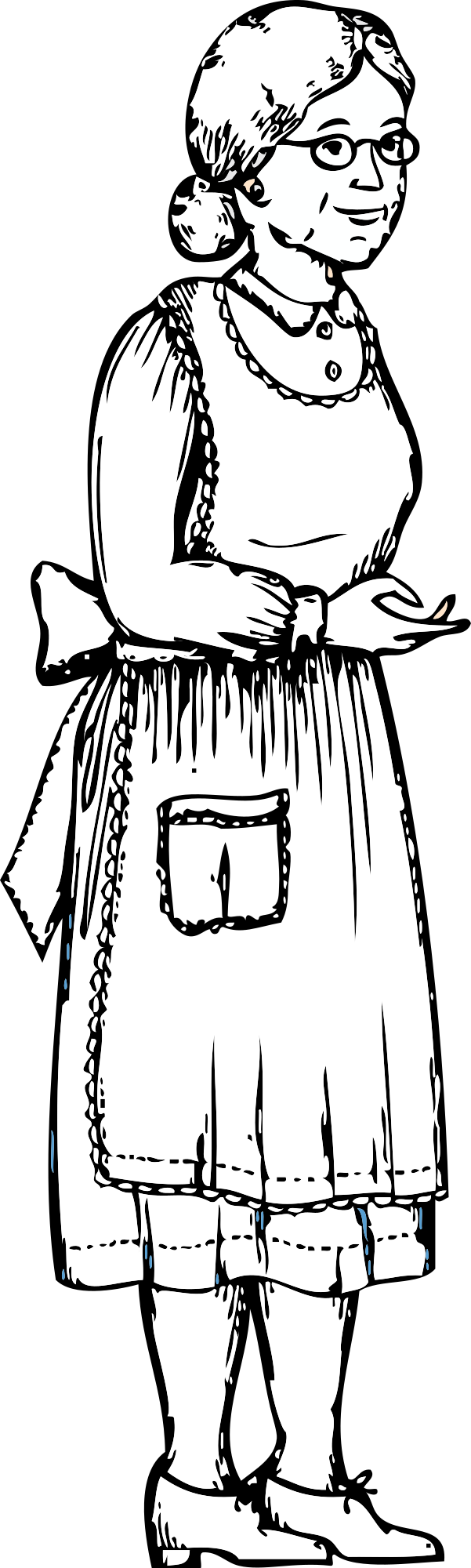 A grandma in balck and white.