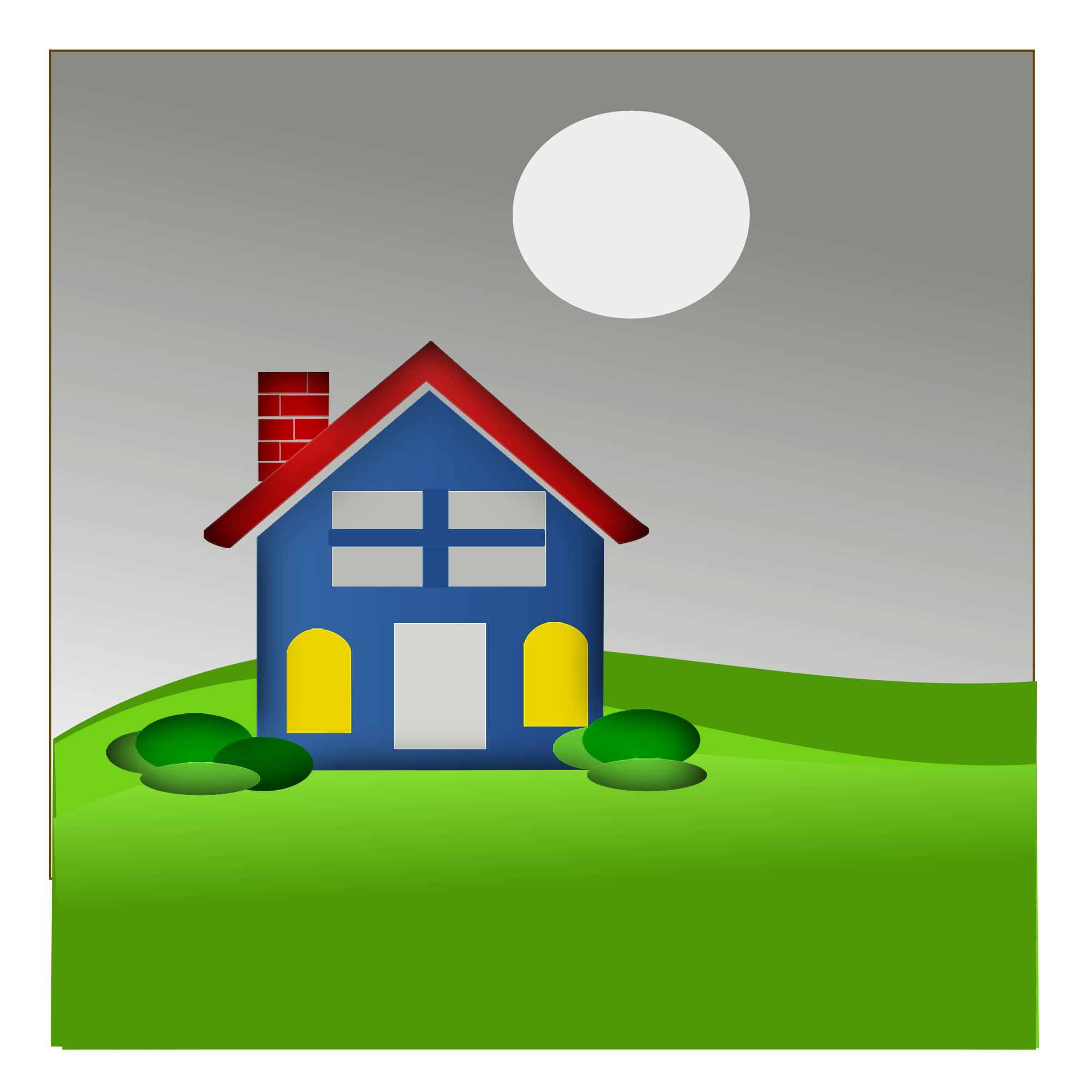 A home on a hill with a moon.