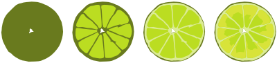 A series of limes, showing the progression of the drawing