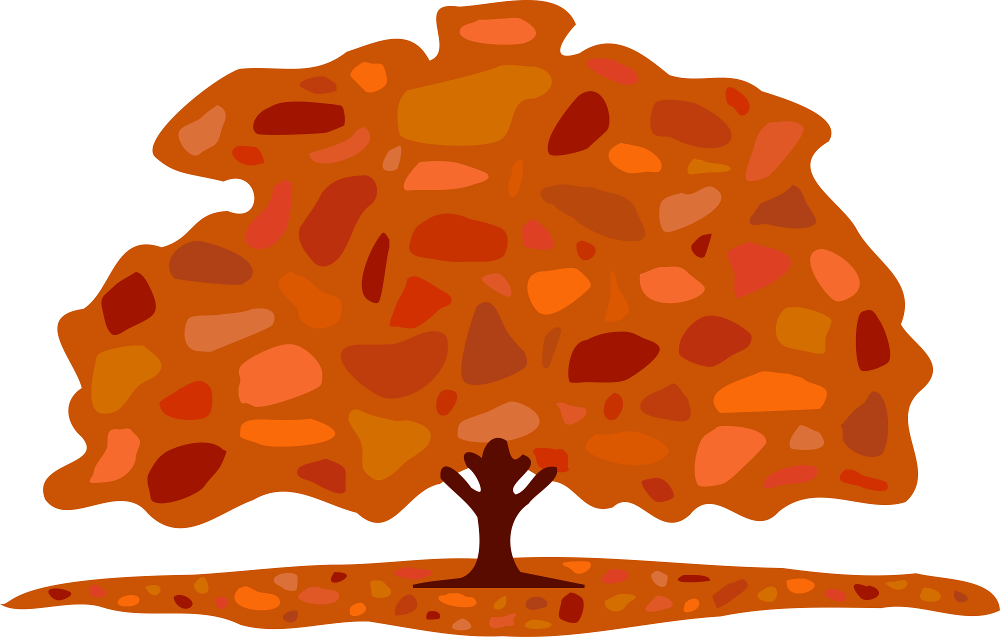 An autumn tree, with leaves on the ground.