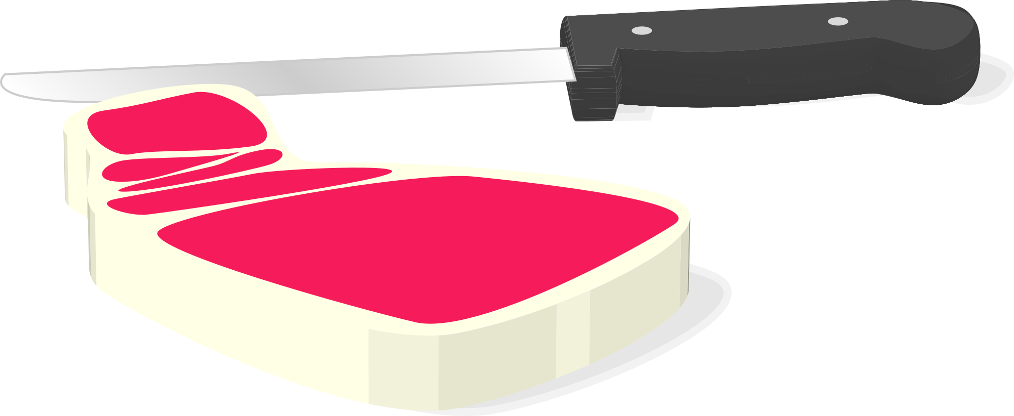 A raw steak with a knife.