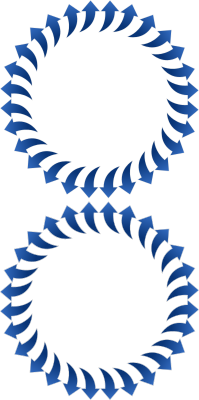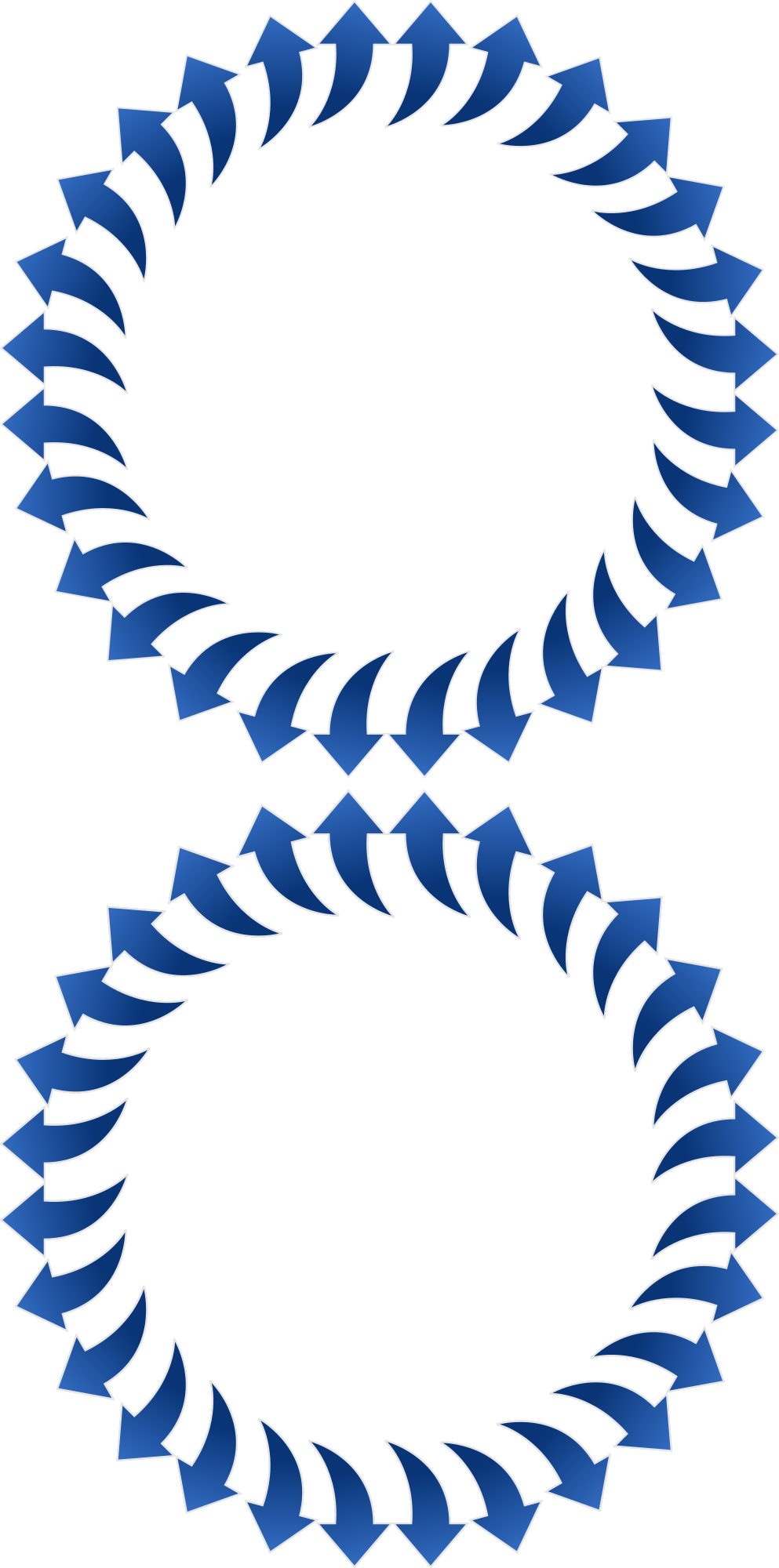 Fifty six curved arrows in blue gradient.