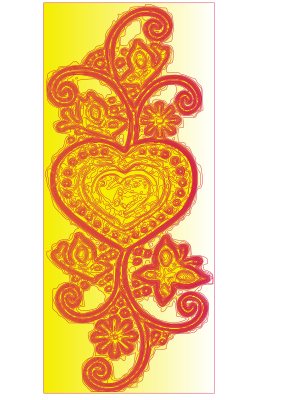Yellow ornament with floral shapes and a heart.