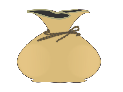 A money bag with a dollar sign tied by a rope.