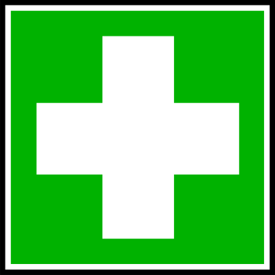 A green information sign for a first aid kit.