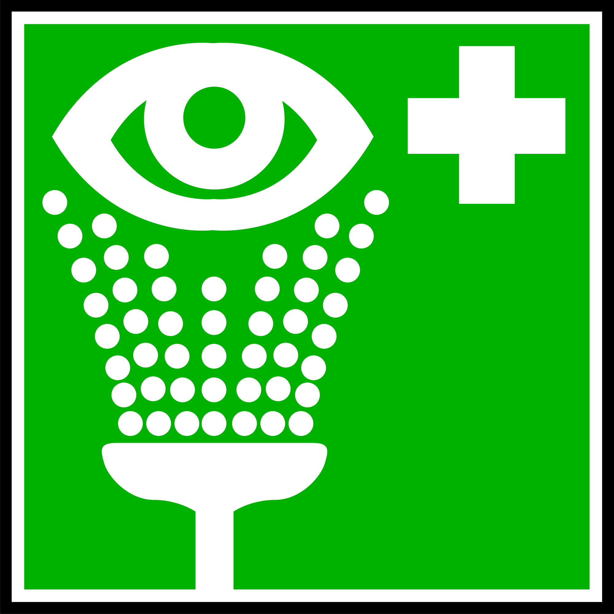A green information sign with for an eye wash.