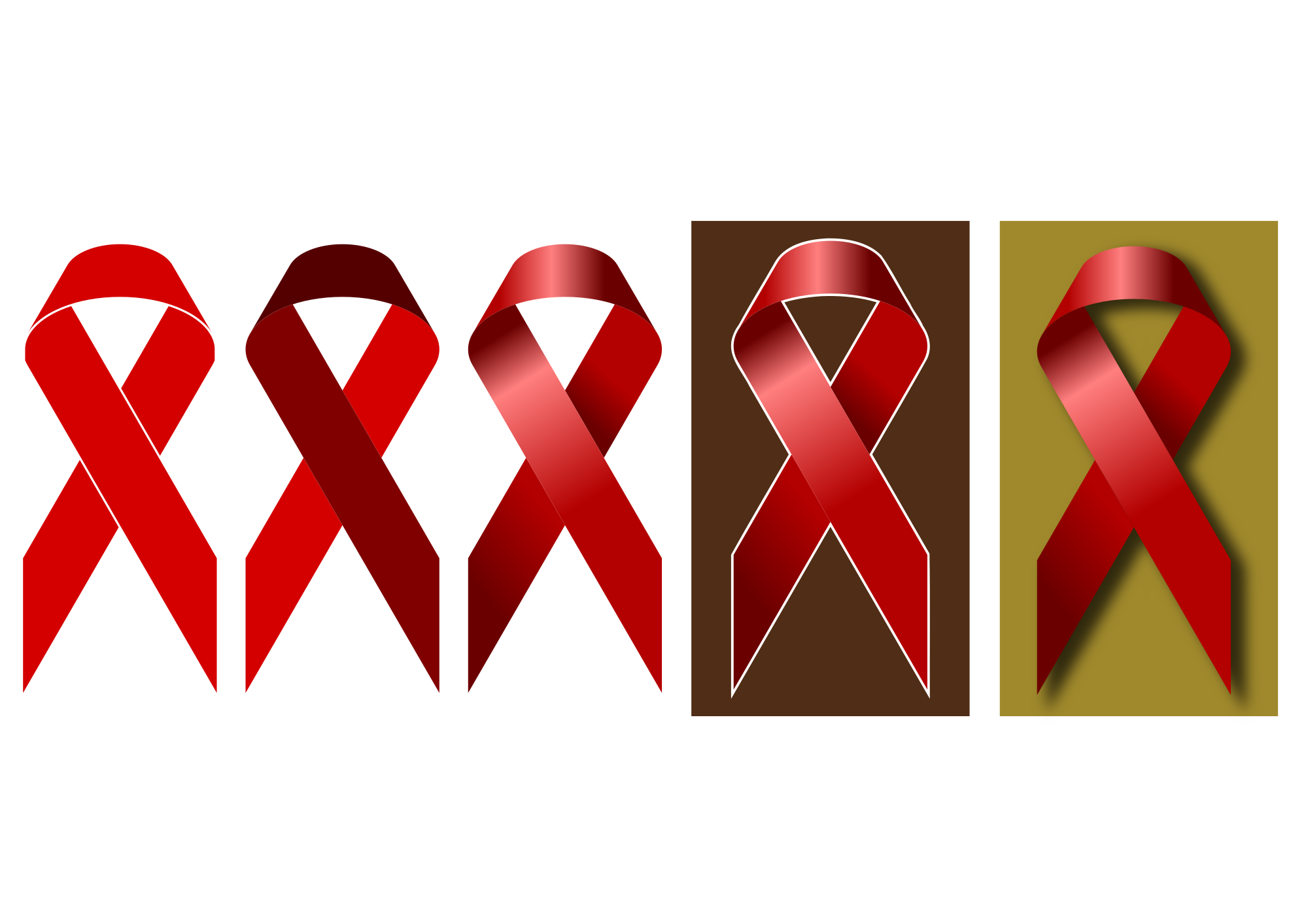 A few variants (cutting version, plain color, gradient color, outlined, shadowed) of a geometrical red ribbon. Made with inkscape.