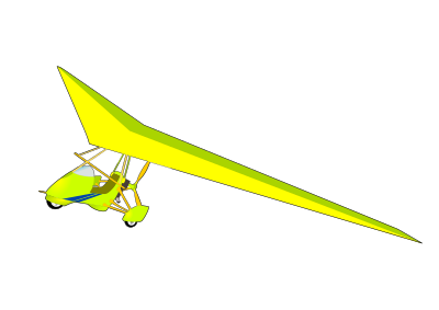 A delta plane with wheel flying.