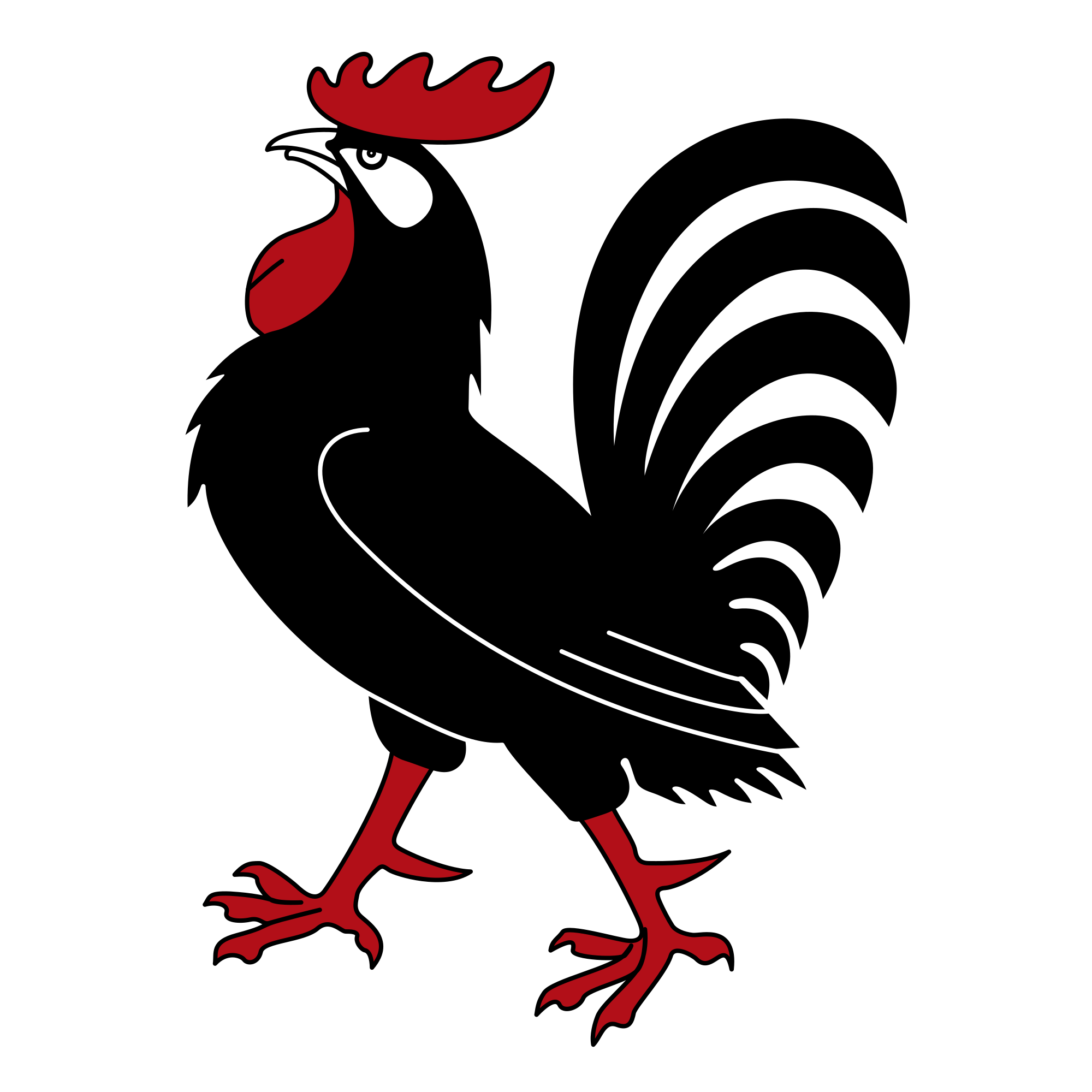 black rooster strutting